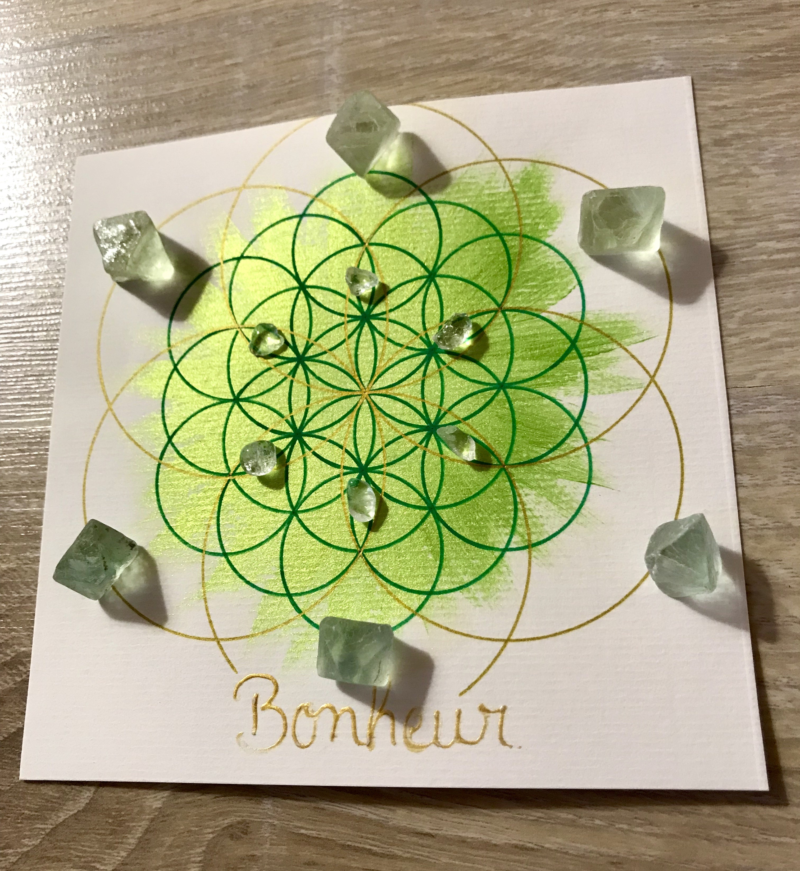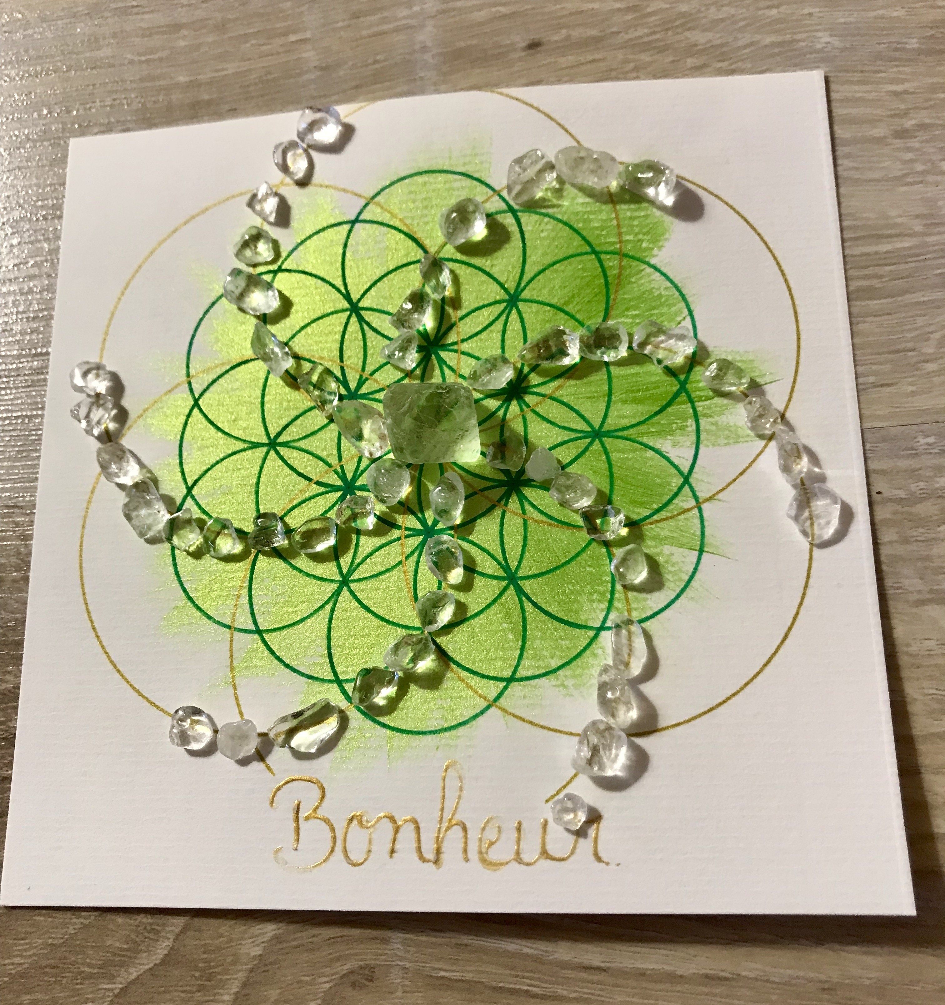 La Grille de cristaux amplifie l'action de la Carte Lumière, elle permet de faire rayonner la Carte Lumière et de diffuser son énegie dans toute la pièce.