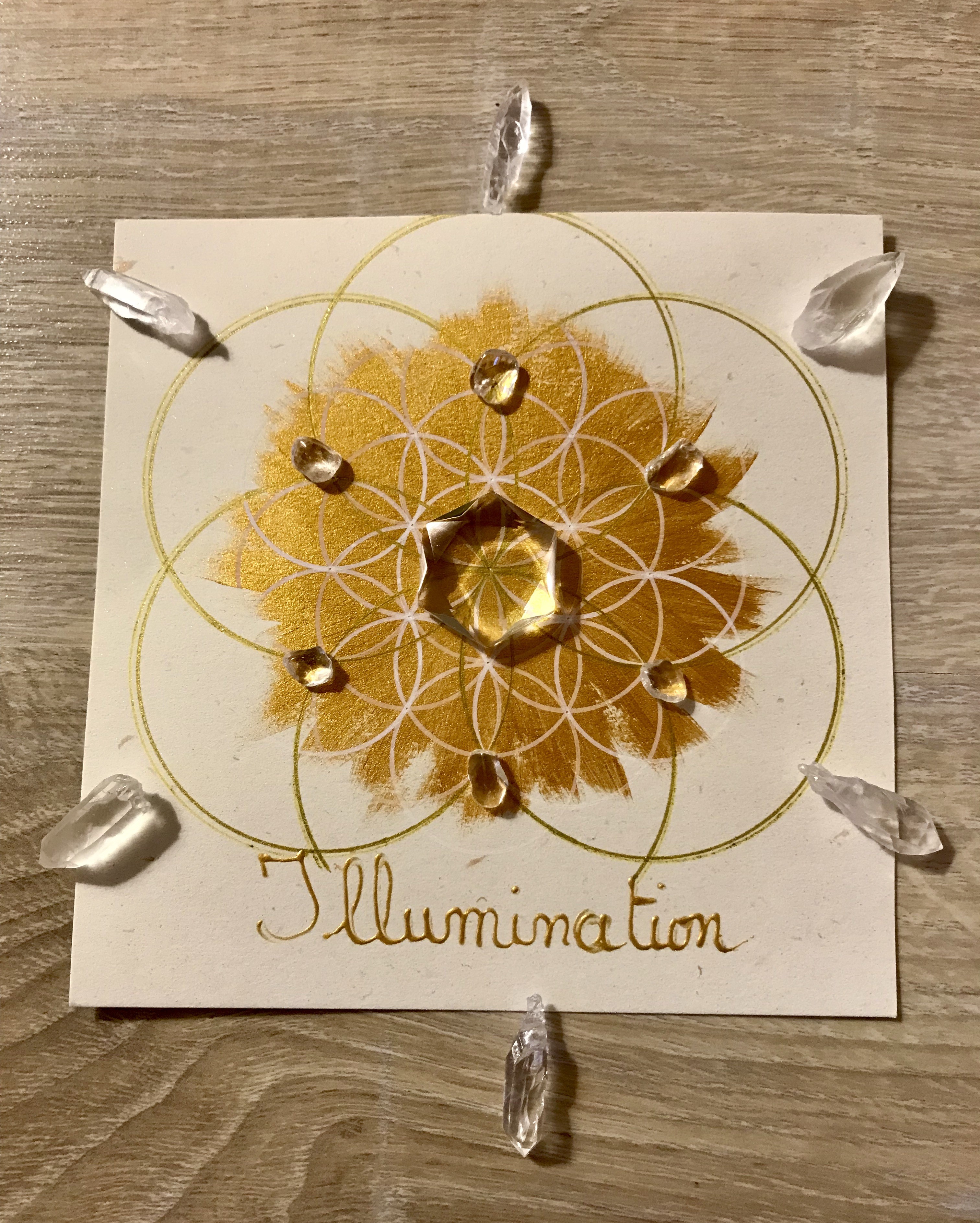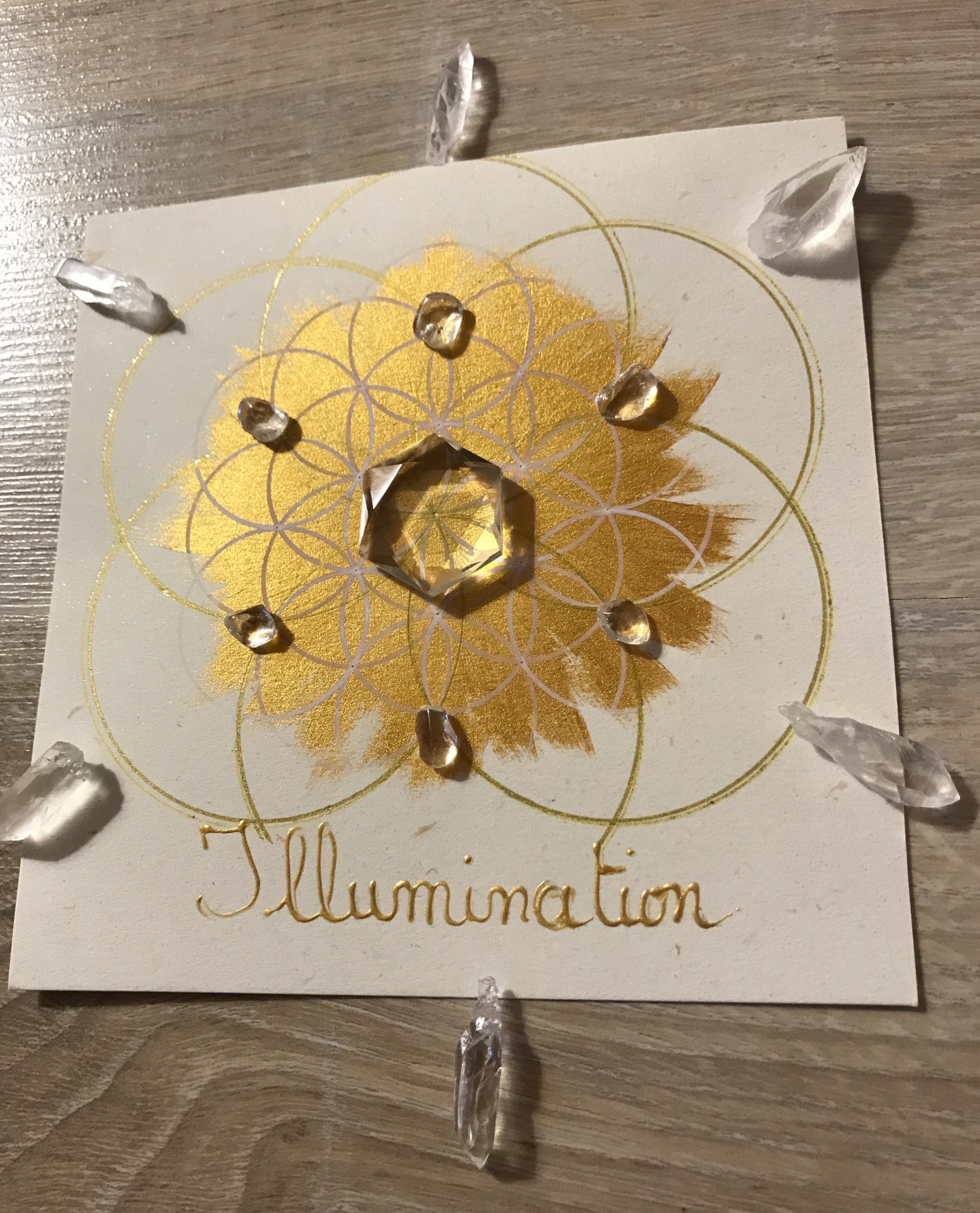 La Grille de cristaux amplifie l'action de la Carte Lumière, elle permet de faire rayonner la Carte Lumière et de diffuser son énegie dans toute la pièce.