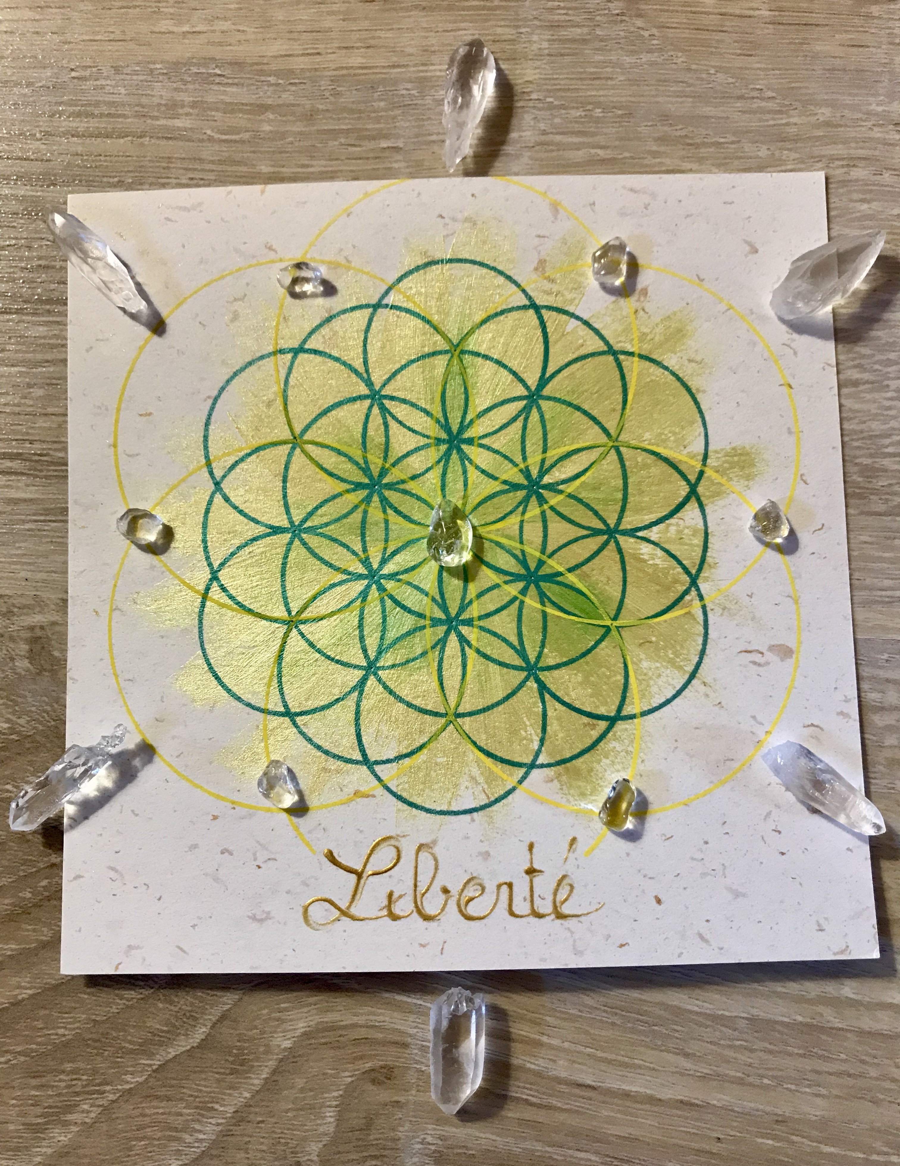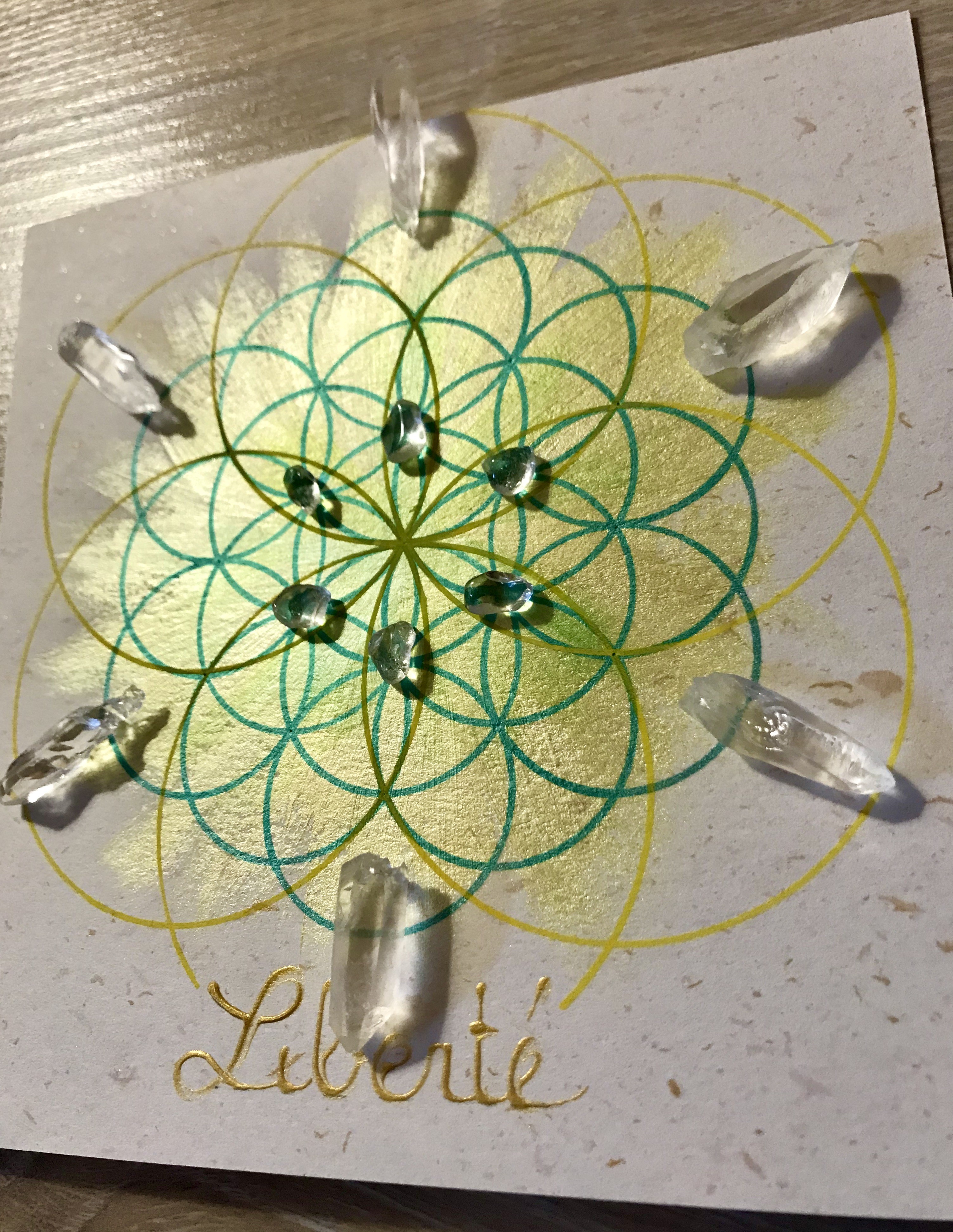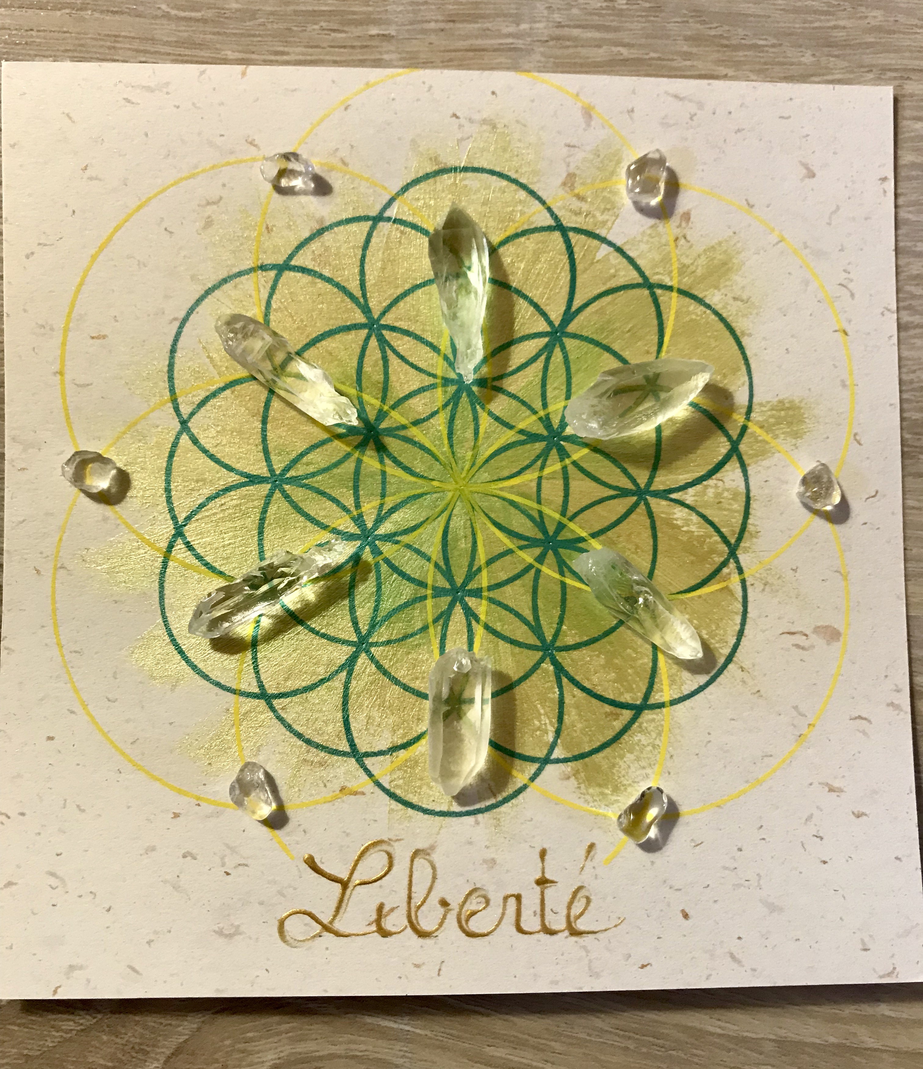La Grille de cristaux amplifie l'action de la Carte Lumière, elle permet de faire rayonner la Carte Lumière et de diffuser son énegie dans toute la pièce.