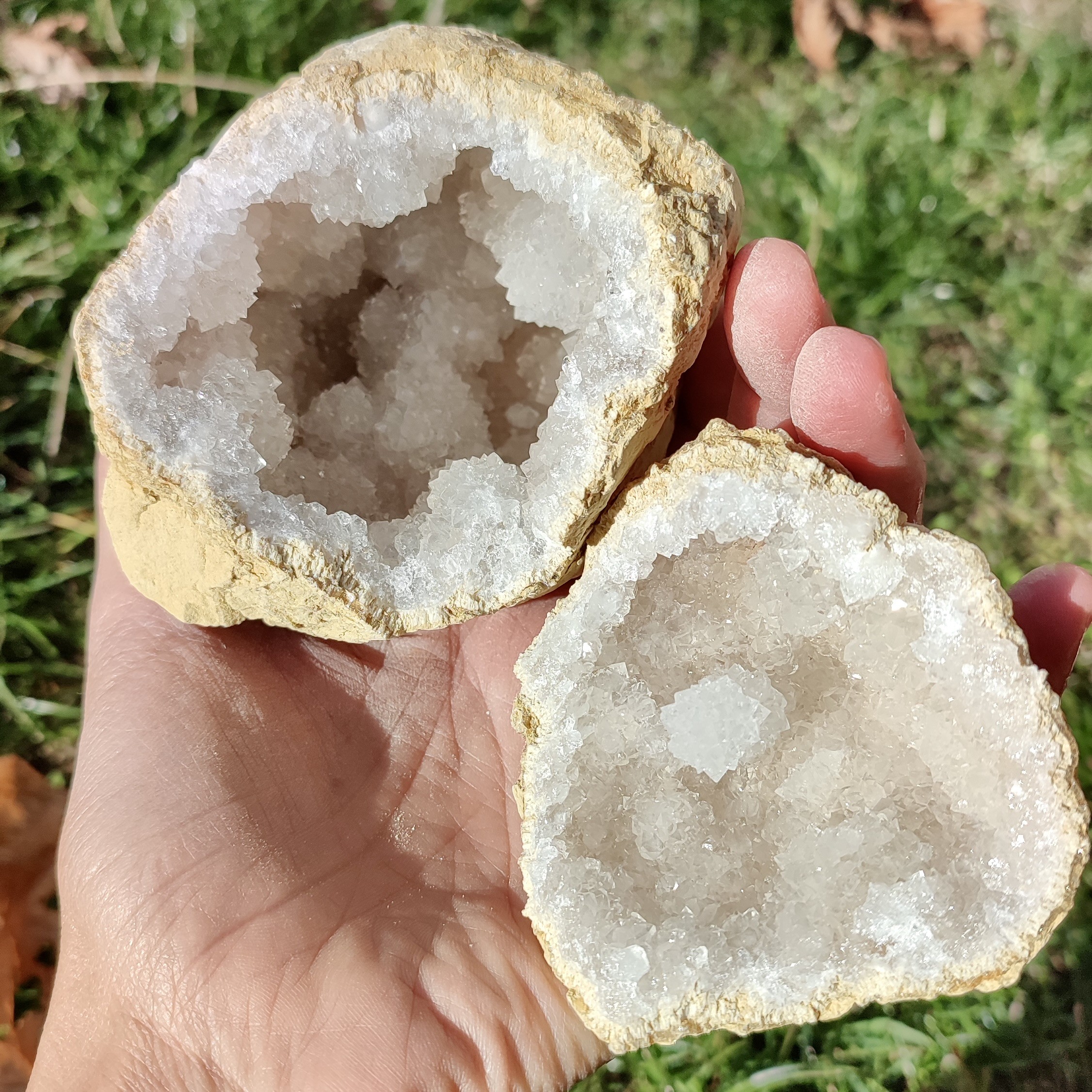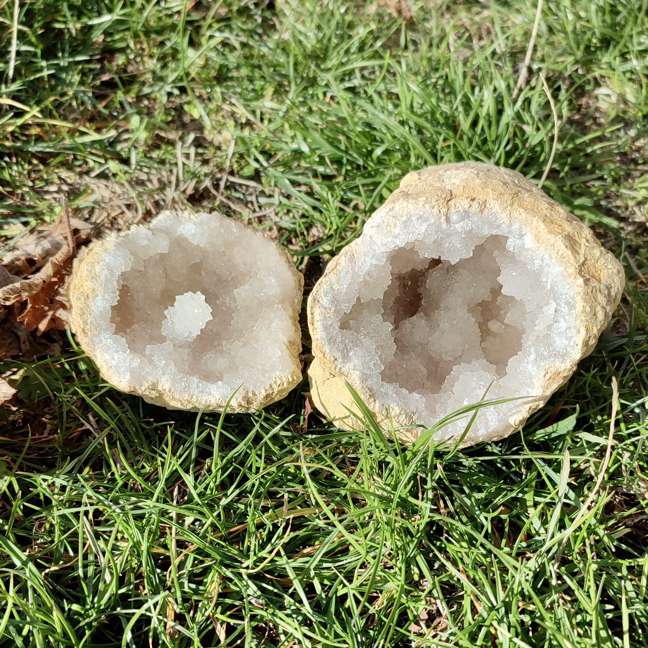 Cette Géode de quartz en cristal de roche en deux morceaux est parfaite pour être installée sur un autel afin créer un espace vibratoire pour activer vos Géométries Sacrées.